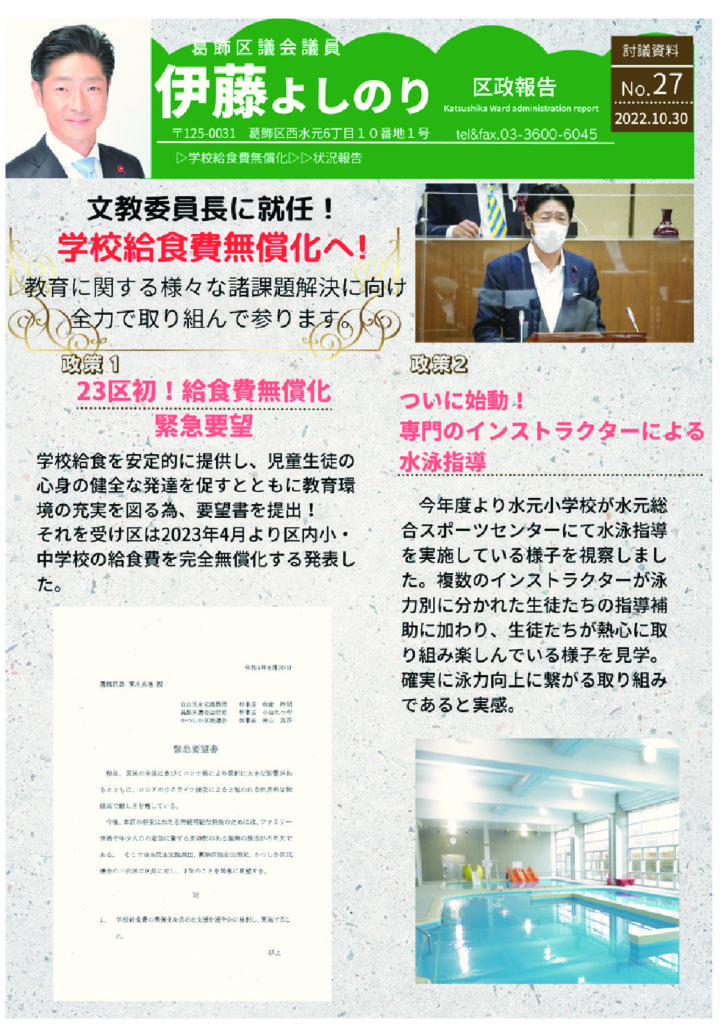 葛飾区議会議員伊藤よしのりの活動を応援してくださるボランティアの方、ポスターをご自宅の塀等に貼らせて頂ける方を随時募集しています
